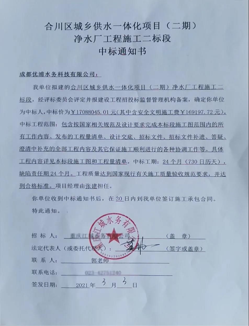 | 新年開門紅,祝賀優(yōu)浦水務(wù)又中標(biāo)一體化設(shè)備大項(xiàng)目 |