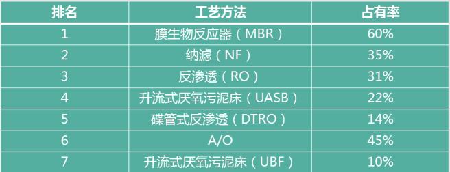 垃圾滲濾液方法累計統計排名工藝: