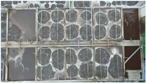 污水處理流程 具體流程: 01、養殖場排出的廢水在收集池沉淀后,經由污水提升泵送達至固液分離機,進行干濕分離,得到濾液; 02、濾液通過壓力泵抽送到厭氧反應器進行厭氧發酵,利用產生的沼氣進行發電獲得再生能源。 03、通過厭氧發酵的沼氣池出水便經由氨氧化池,缺氧池到達好氧池。在處理過程中,技術部門改進工藝,將連續曝氣改為間歇曝氣,曝氣時間減少三分之一,在節約時間的同時也節約成本。 04、二沉池出水后便要經過二級膜分離濃縮。通過后端增加的MBR膜反滲透膜來實現,MBR膜具有高效的截留率,能夠將原水中的大部分物質截留,進而實現對廢水的凈化→分離→提純。此外MBR將傳統污水處理的曝氣池,與沉淀池合二為一,大幅度的減少了占地面積。污水經過二級膜分離濃縮處理之后,基本上已經很清澈了。 沼氣池與二沉池水顏色對比