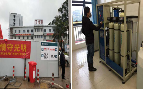 污水設備調試現場(都江堰) 2月1日-2月3日,榆林市人民醫院發熱門診、長春市人民醫院發熱門診緊急安裝純水設備。